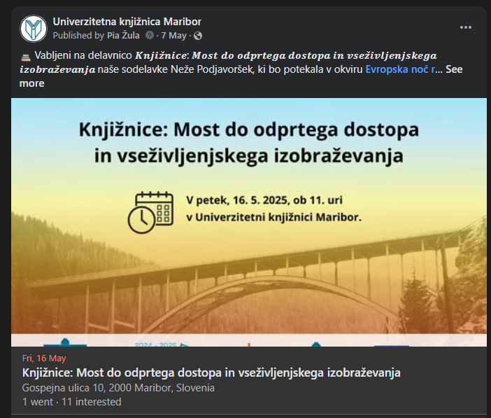 Knjižnice: Most do odprtega dostopa in vseživljenjskega izobraževanja (delavnica)