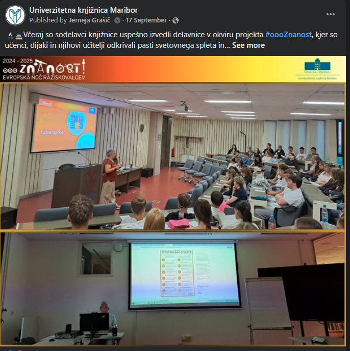 Delavnica o kritičnem vrednotenju informacij in virov ter njihovi uporabi v izobraževalne namene, namenjena pedagoškemu osebju. Ogledali si bomo tudi kratek film finskega modela, ki ponazarja pomen zgodnjega ozaveščanja kritičnega vrednotenja informacij. Število je omejeno na 20 udeležencev.